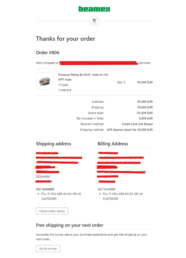If your order has been successful, you will receive an order acknowledgement email as shown below.