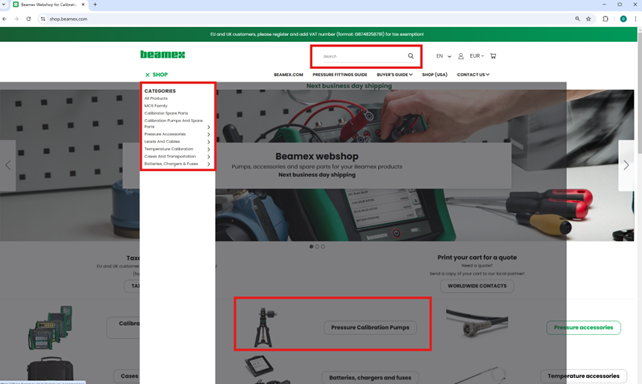 You can search for products by using the search function, by Categories, and by clicking on the product picture as shown below: