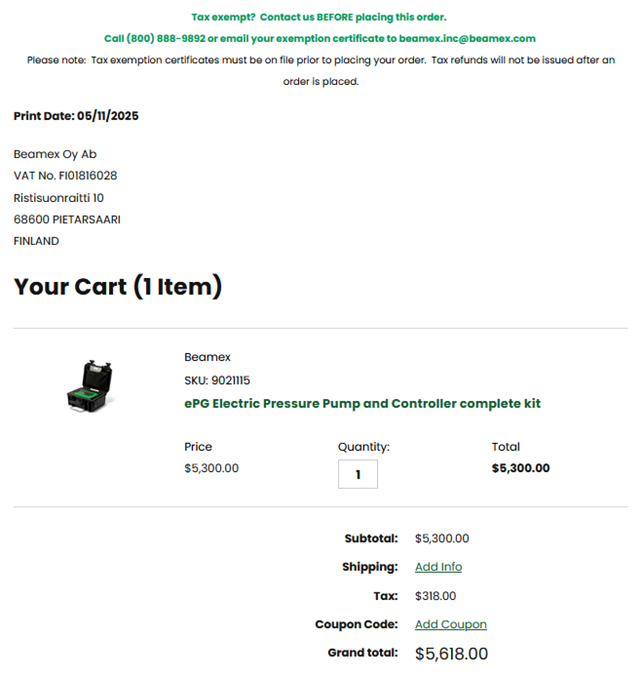 TO PRINT YOUR CART AND USE IT AS A QUOTE; PLEASE CLICK ON VIEW OR EDIT CART. THE PRINTED CART CAN BE HANDED TO THE PURCHASING DEPARTMENT.