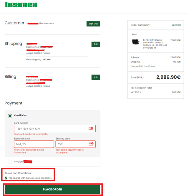 FILL THE DETAILS, CHOOSE PAYMENT METHOD IF PRESENTED WITH CHOICES (FILL CREDIT CARD DETAILS), AGREE THE TERMS AND CONDITIONS. PLACE THE ORDER